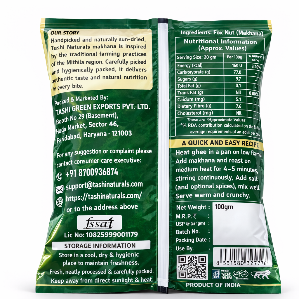 Whether you want a healthy evening snack, diet friendly food or a nutritious ingredient for cooking, Tashi Naturals Raw Makhana is a perfect choice.